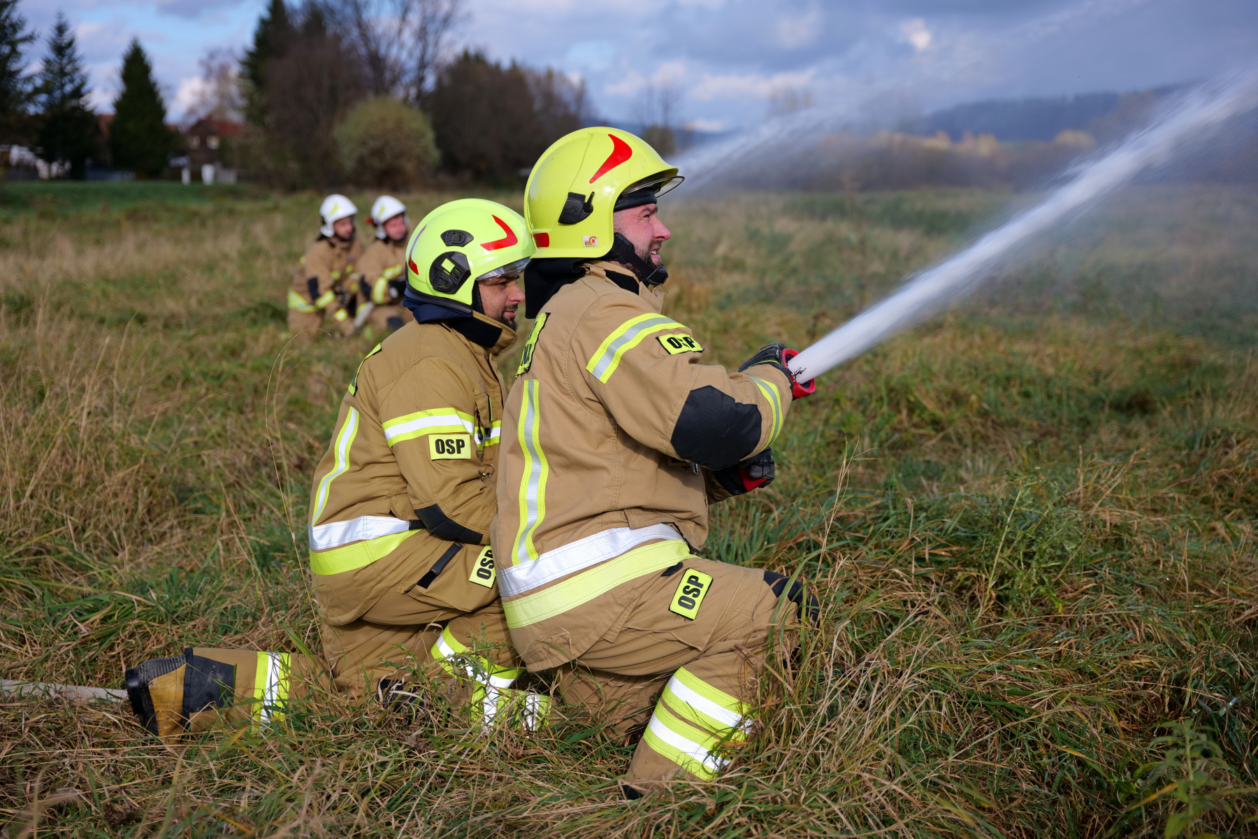 Następnie druhowie przystąpili do części praktycznej, która odbyła się nad rzeką San. Ćwiczyli tam techniki podawania wody z wozu na wóz i doskonalili współpracę między jednostkami. Jak zawsze w przypadku strażaków – było dynamicznie, z pasją i widowiskowo! Wspólne ćwiczenia to nie tylko forma praktycznego szkolenia, ale również doskonała okazja do wymiany doświadczeń i budowania trwałej współpracy między jednostkami z Polski i Słowacji.