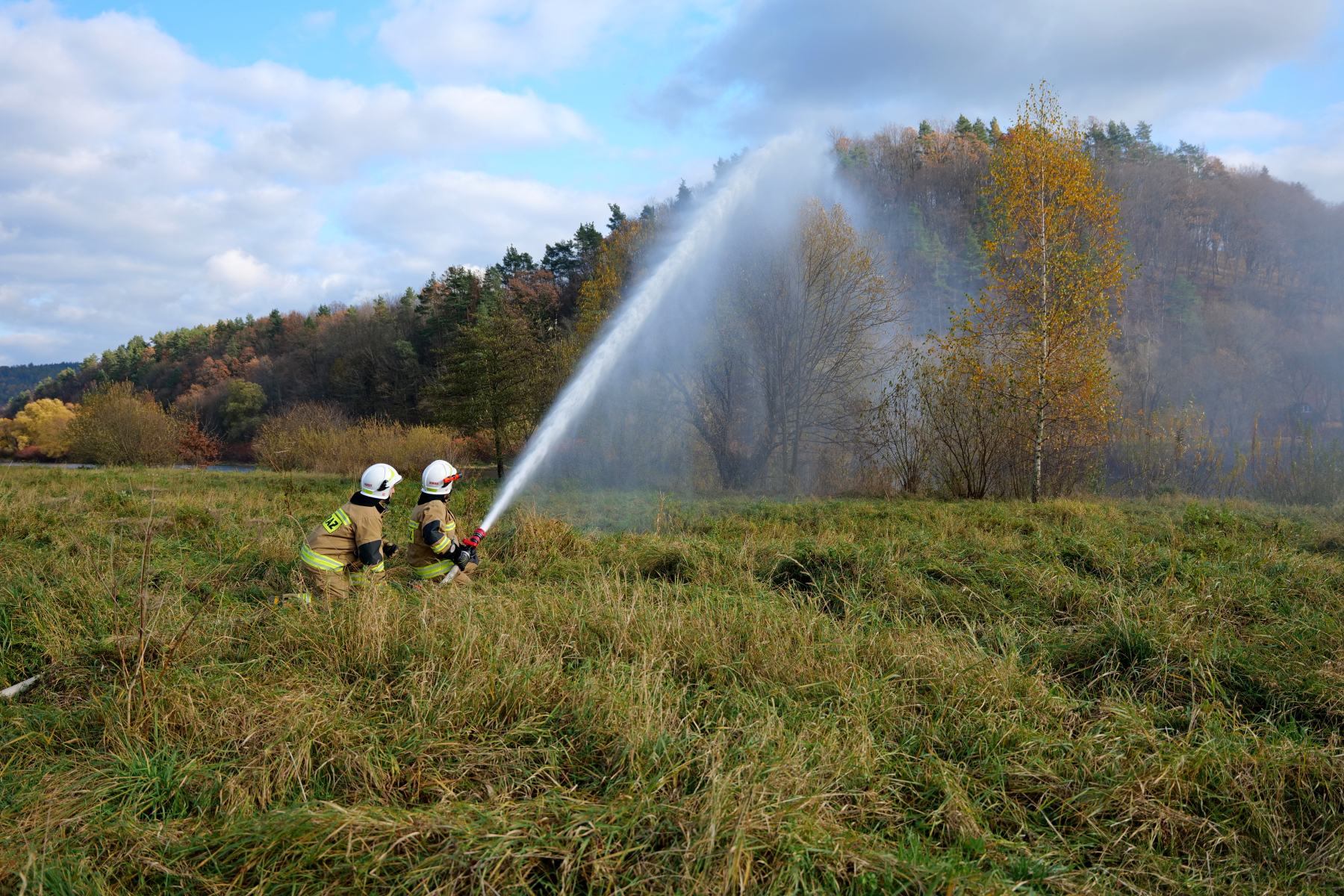 Następnie druhowie przystąpili do części praktycznej, która odbyła się nad rzeką San. Ćwiczyli tam techniki podawania wody z wozu na wóz i doskonalili współpracę między jednostkami. Jak zawsze w przypadku strażaków – było dynamicznie, z pasją i widowiskowo! Wspólne ćwiczenia to nie tylko forma praktycznego szkolenia, ale również doskonała okazja do wymiany doświadczeń i budowania trwałej współpracy między jednostkami z Polski i Słowacji.