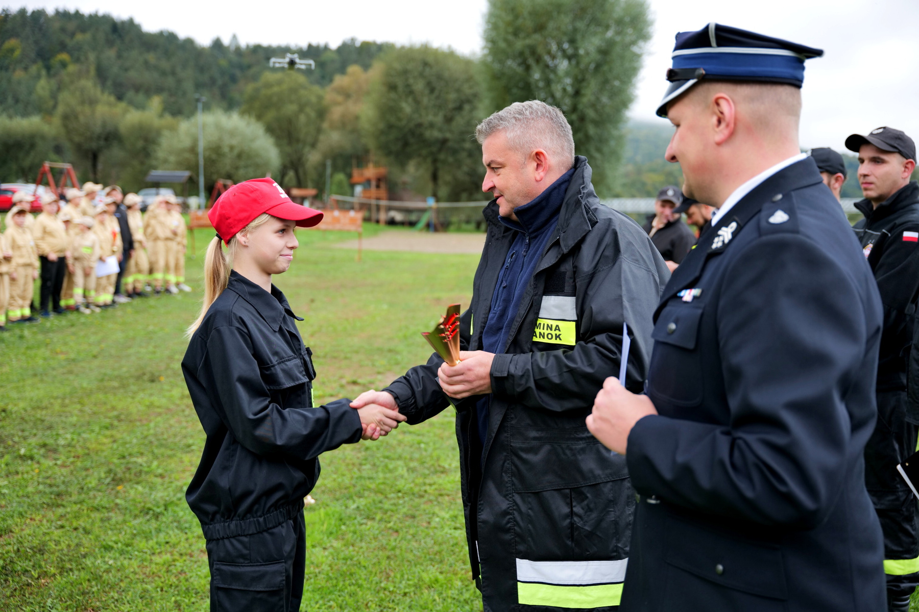 Wszystkie drużyny z rąk Wójta Pawła Wdowiaka oraz Prezesa Zarządu ZOSP RP w Sanoku Daniela Bielaka otrzymały pamiątkowe puchary i dyplomy. Na zakończenie współorganizatorzy wydarzenia tj. OSP Tyrawa Solna i OSP Hłomcza zaprosiły wszystkich zebranych na pyszny posiłek regeneracyjny w postaci kiełbasek z grilla, domowych wypieków, popcornu, waty cukrowej oraz ciepłych napojów. Mimo niesprzyjających warunków pogodowych zawody zakończyły się sukcesem i z niecierpliwością czekamy już na kolejne!