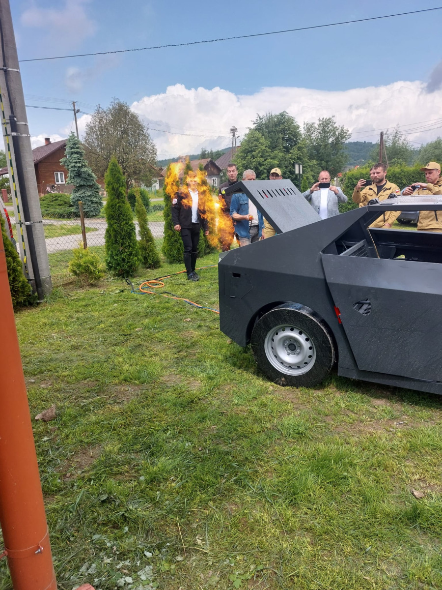 Drugim elementem dostawy jest mobilny trenażer pożaru samochodu, który umożliwia praktyczne szkolenie w zakresie gaszenia pojazdów objętych ogniem. Urządzenie pozwala na symulację różnych scenariuszy – od pożaru komory silnika po zapłon wnętrza kabiny.