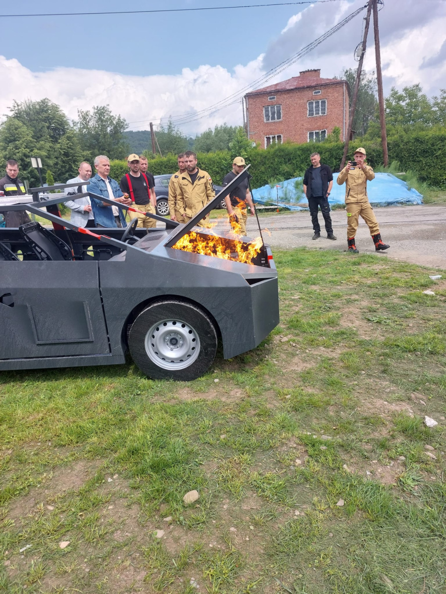 Drugim elementem dostawy jest mobilny trenażer pożaru samochodu, który umożliwia praktyczne szkolenie w zakresie gaszenia pojazdów objętych ogniem. Urządzenie pozwala na symulację różnych scenariuszy – od pożaru komory silnika po zapłon wnętrza kabiny.