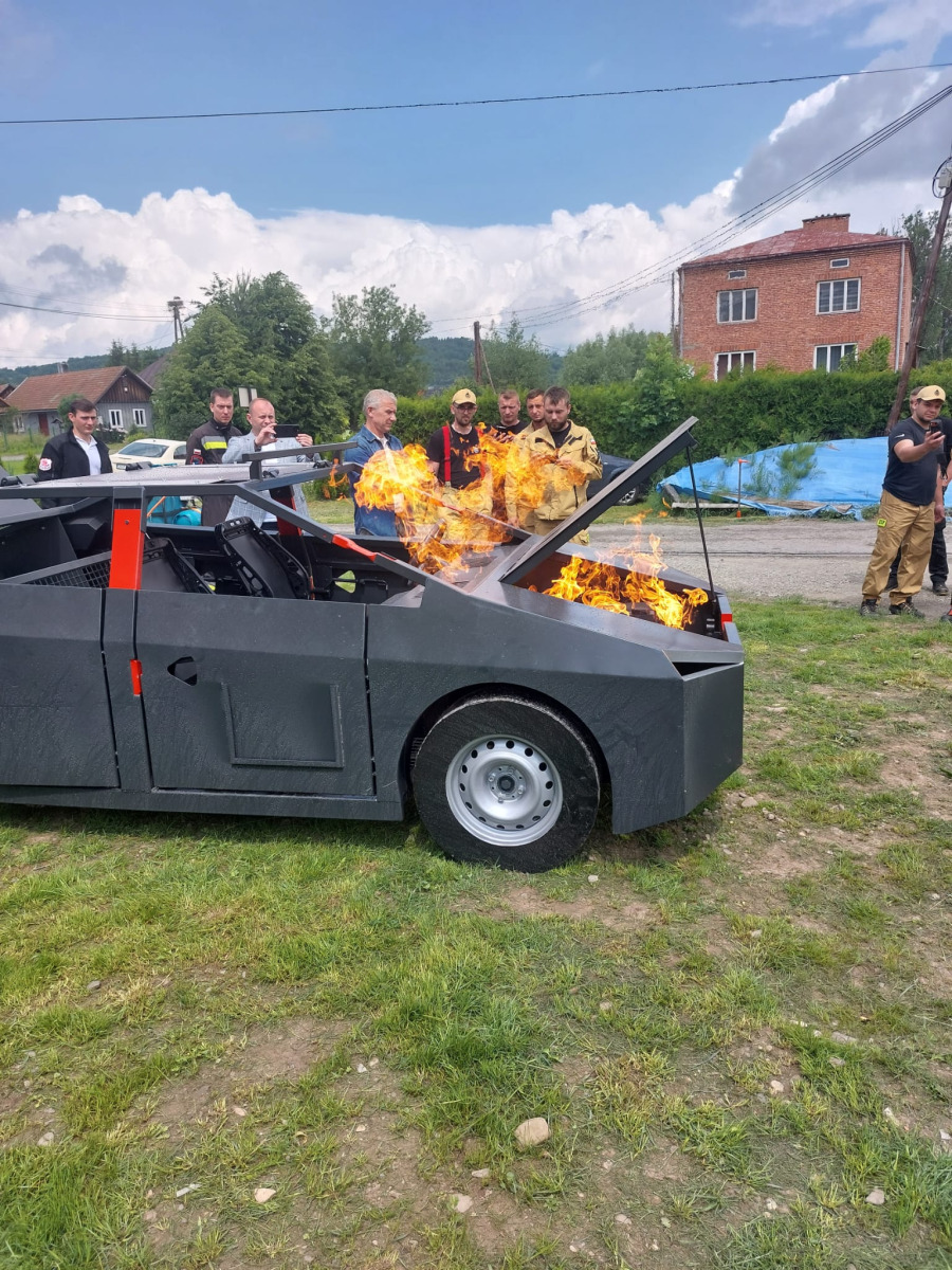 Drugim elementem dostawy jest mobilny trenażer pożaru samochodu, który umożliwia praktyczne szkolenie w zakresie gaszenia pojazdów objętych ogniem. Urządzenie pozwala na symulację różnych scenariuszy – od pożaru komory silnika po zapłon wnętrza kabiny.