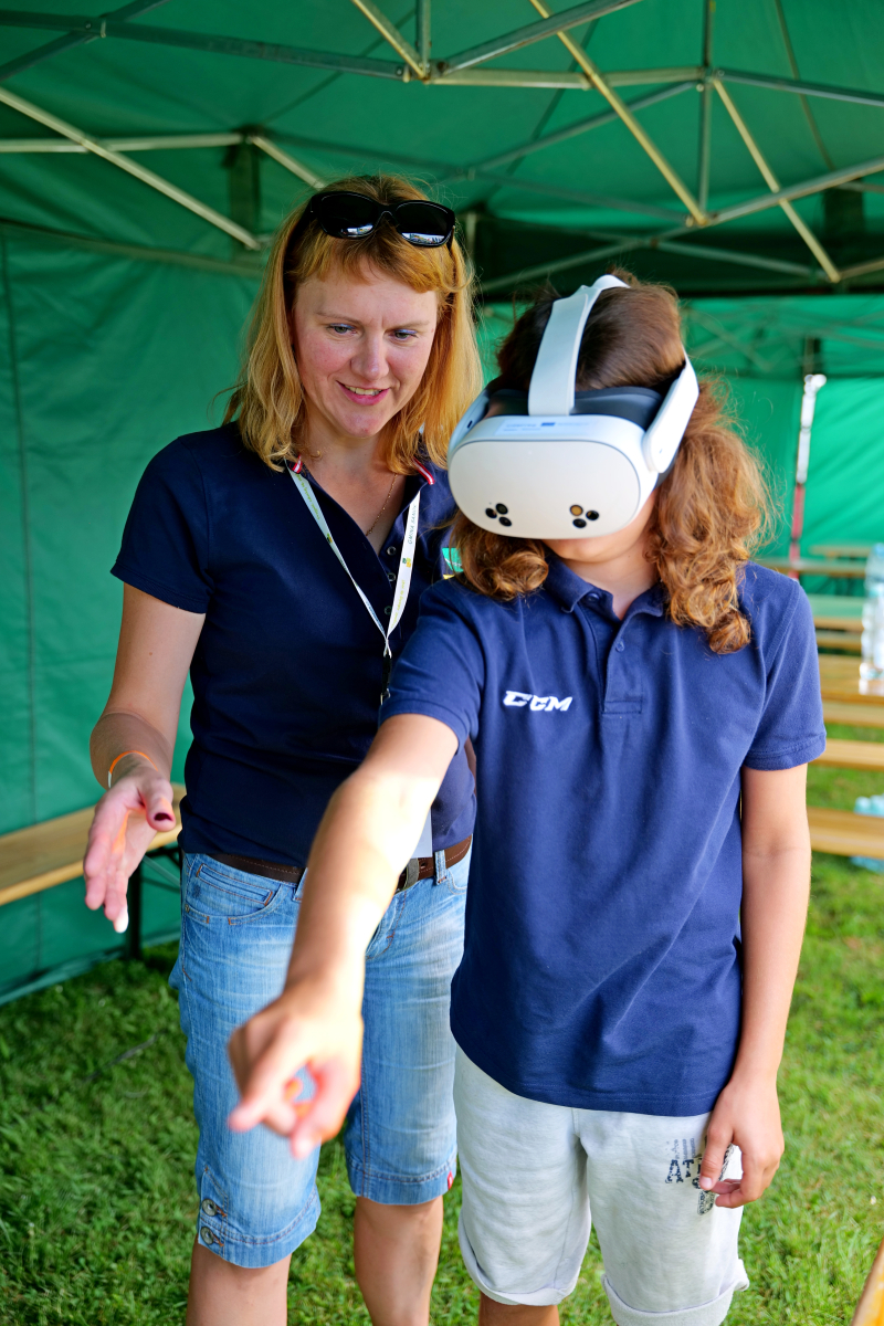 Nowością była również możliwość skorzystania z gogli VR, dzięki którym każdy mógł poczuć się jak strażak i spróbować swoich sił w gaszeniu wirtualnego pożaru. Ta atrakcja spotkała się z ogromnym entuzjazmem uczestników i połączyła edukację z nowoczesną technologią.