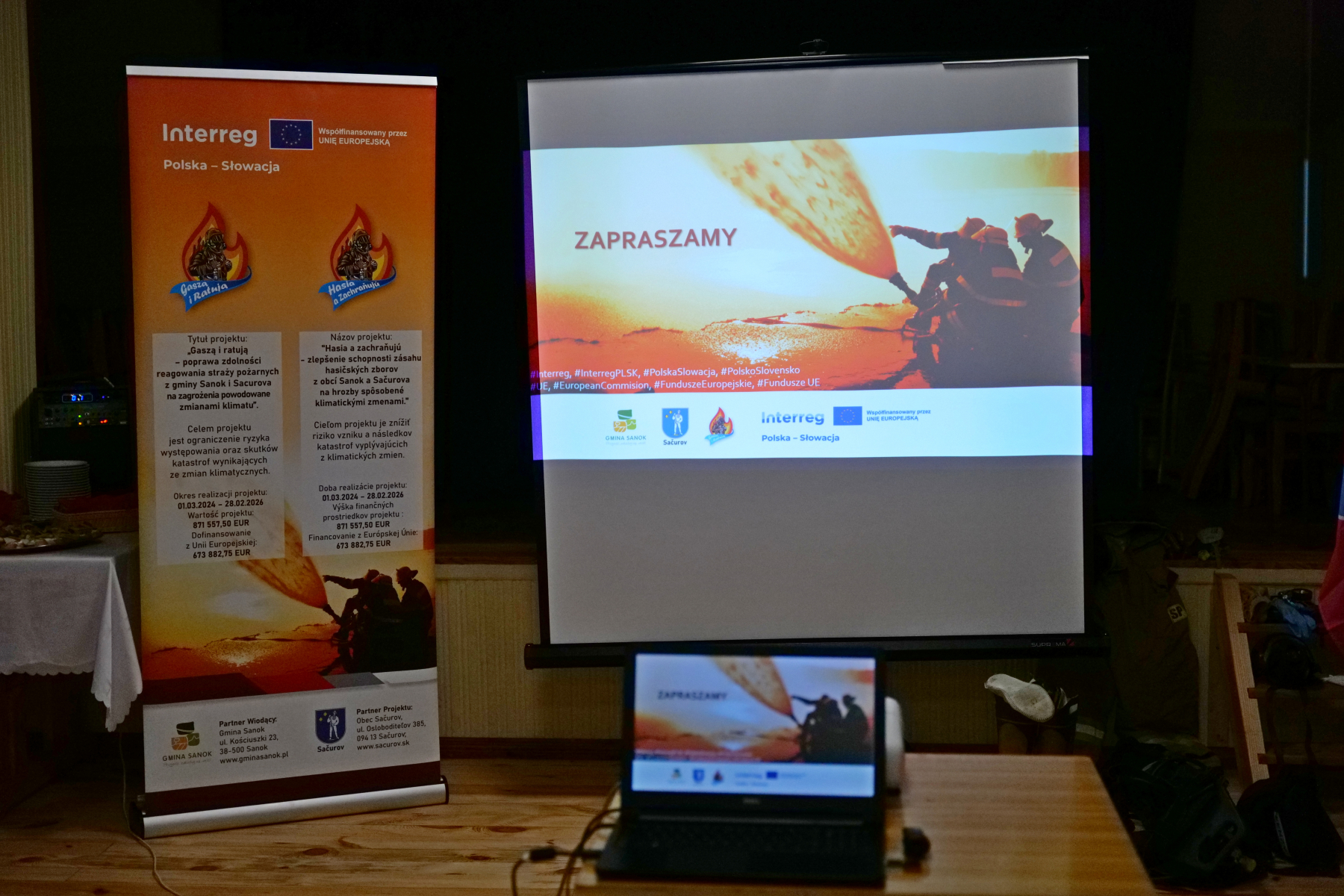 W dniach 3–4 października 2025 r. w miejscowościach Mrzygłód i Tyrawa Solna odbywają się specjalistyczne szkolenia dla druhów-ochotników z jednostek OSP Gminy Sanok oraz partnerskiej Gminy Sačurov w ramach projektu „Gaszą i ratują”– poprawa zdolności reagowania straży pożarnych z gminy Sanok i Sacurova na zagrożenia powodowane zmianami klimatu”.